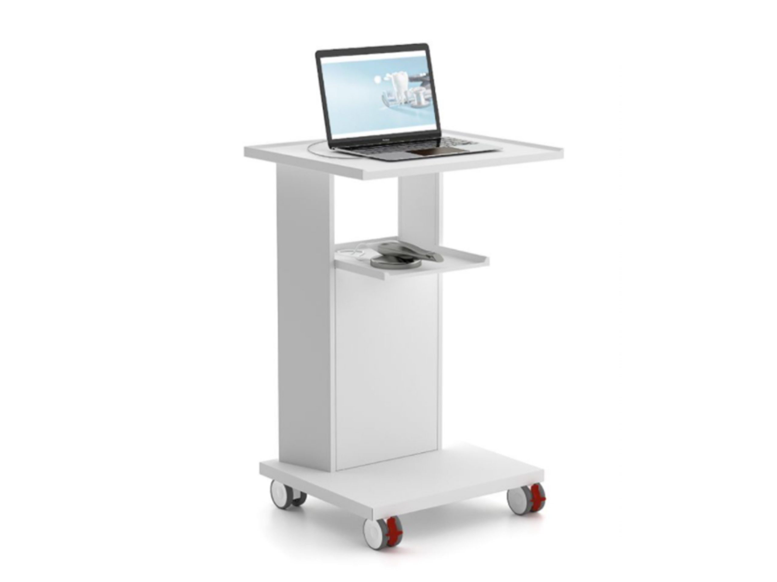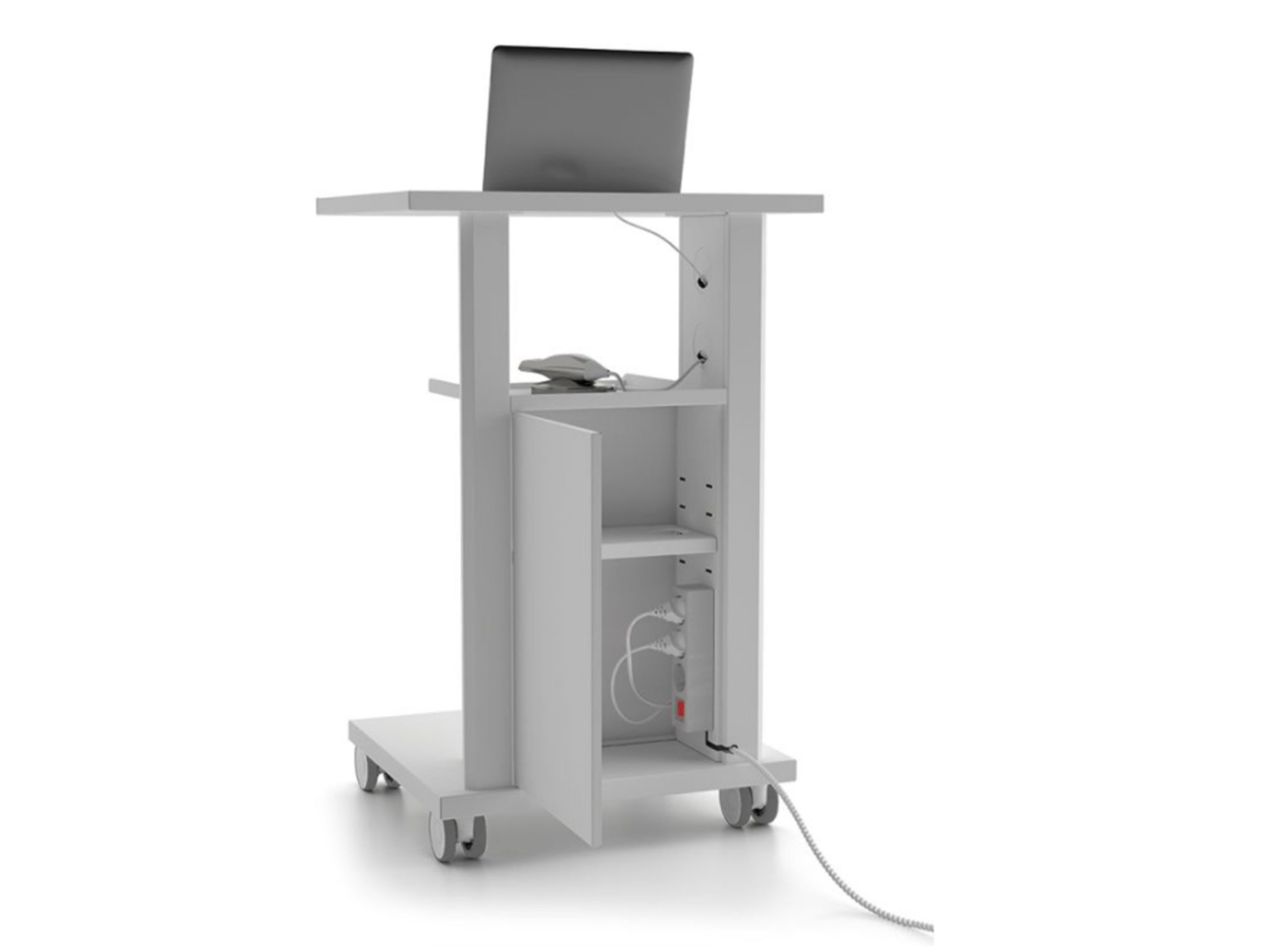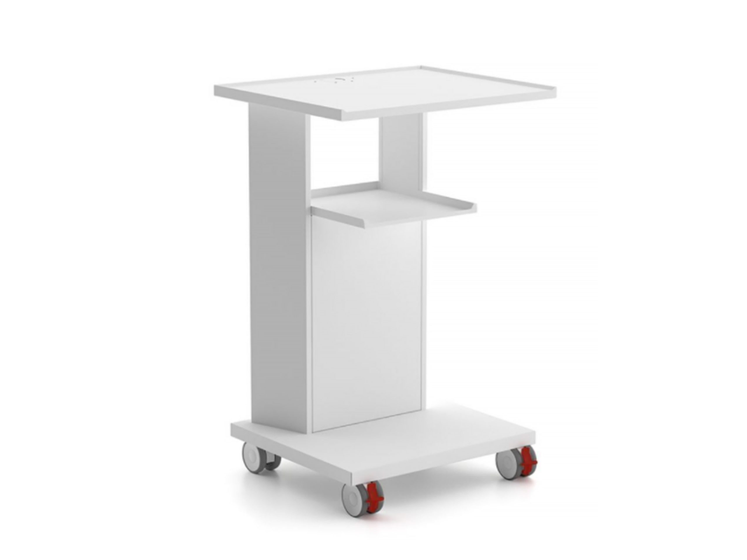 Con zócalo deslizante y estante para diferentes usos y equipos.