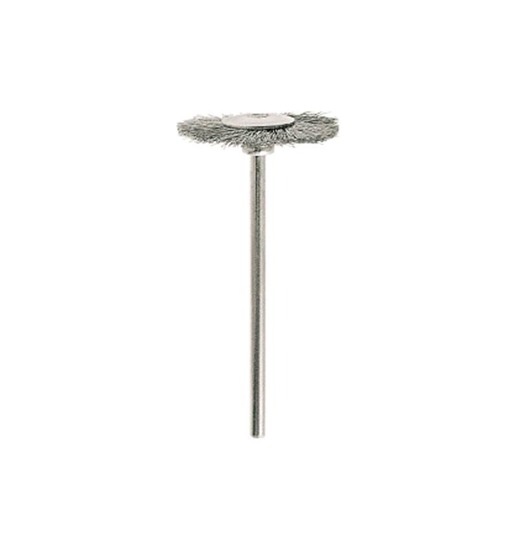Cepillo montado fabricado en hilo de acero inoxidable ondulado. Indicado especialmente para el proceso de bruñido y limpieza de superficies con capas de óxido o similares.