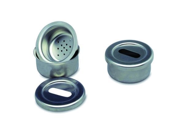 Está constituido por tres elementos de acero inoxidable: una pequeña cuba; una canasta para la colocación de las fresas; y una tapadera con hendidura.