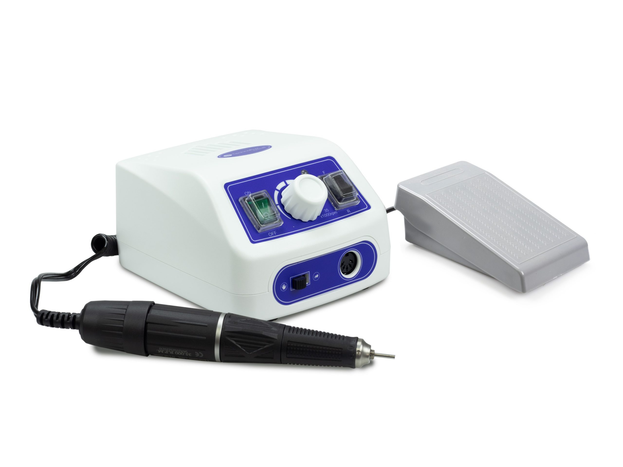 La unidad dispone de control de velocidad manual y mediante pedal de velocidad variable. Además, incluye soportes para 12 fresas, abrasivos o cepillos,