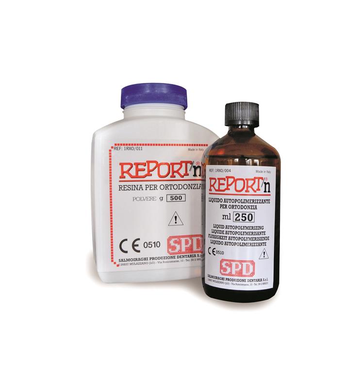 La resina autopolimerizable Report N está compuesta por una mezcla de copolímeros de metacrilato.