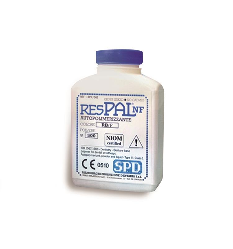 La resina autopolimerizable Respal NF está compuesta por una mezcla de copolímeros de metacrilato.
